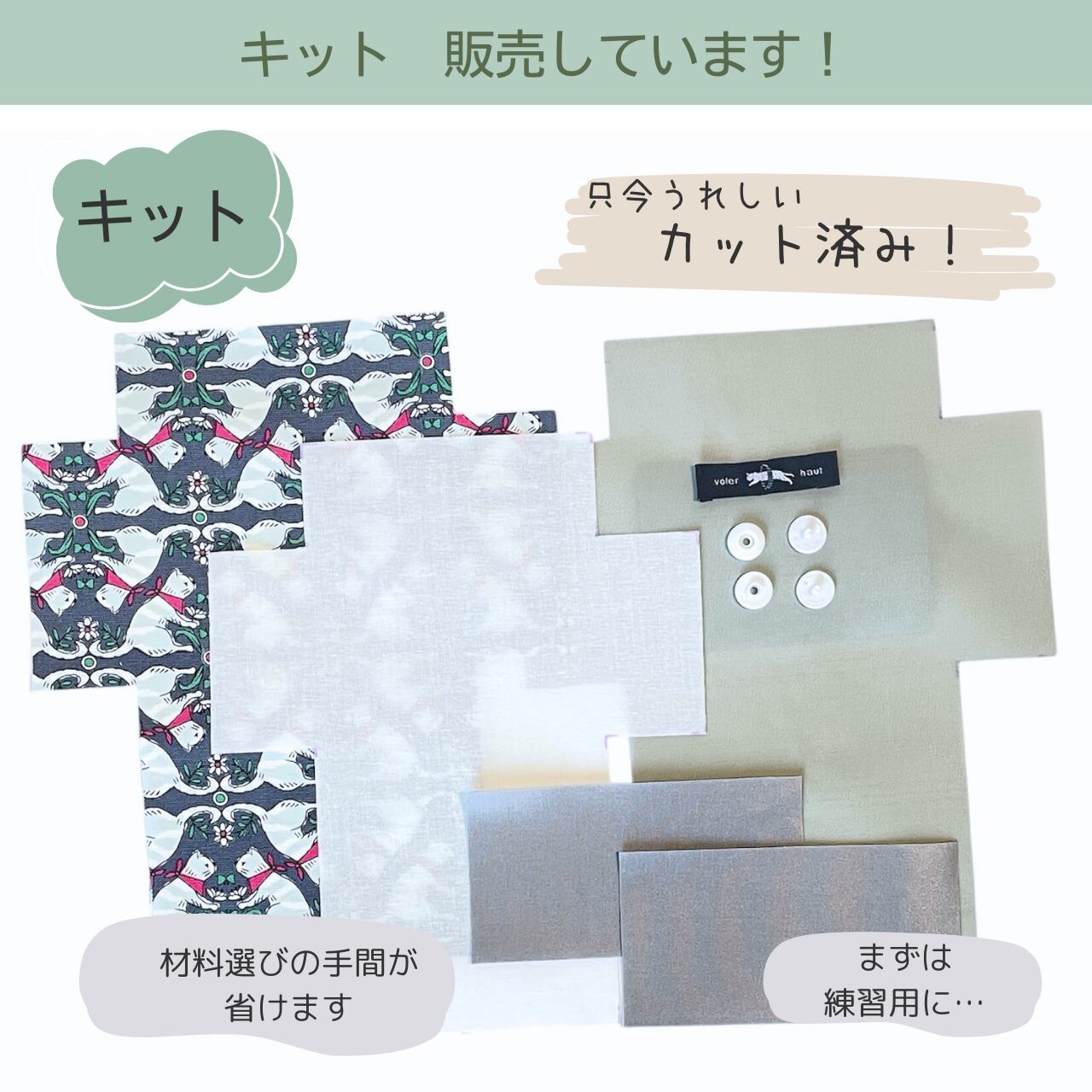 生地は裁断済みで、付属品もすべてそろっているので