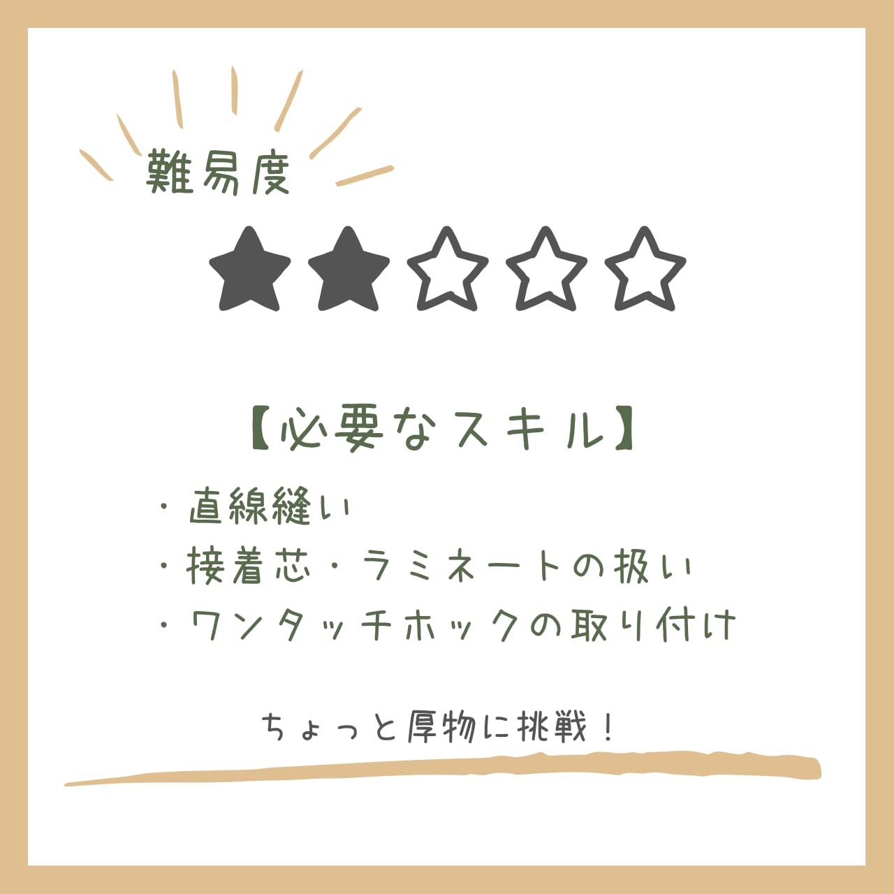 ご自身のミシンに合わせて、生地や接着芯などの