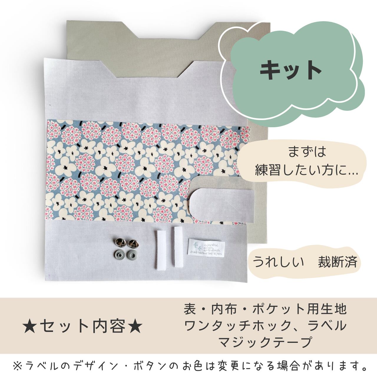 (生地、、ワンタッチホック、ラベル、マジックテープ)